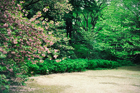 對日本人來說,櫻花不僅僅是宣告從寒冬邁向暖春的花卉,他們對櫻花抱持著更加深刻的情感。櫻花的生命很短暫,日本有民諺說:「櫻花7日」,就是一朵櫻花從開放到雕謝大約為7天,整棵櫻樹從開花到全謝大約16天左右,形成櫻花邊開邊落的特點。被稱作花七日的短暫生命的櫻花竭盡全力為了這個時期綻放盛開,它的雕謝也就顯得震撼人心。櫻花被尊為國花,不僅是因為它的嫵媚嬌艷,更重要的是它經歷短暫的燦爛後隨即雕謝的哀戚感與壯烈感,——不惜一切只為瞬間的絢爛。