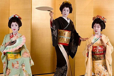藝妓招待顧客一般有四個流程:表演茶道、敬酒對飲、歌舞表演和聊天開心。茶道、斟酒對飲和歌舞中,每一個動作都要極其標準,要盡顯日本最高貴的女性從容溫婉。當一種動作重復一百次的時候,就成為身體的本能,從小動作細節中讓顧客能有穿越歷史回到古代京都禮儀文化氛圍之中。整個過程,緩慢的、細微而精緻的詩意性動作表現出矜持、沈靜的氣質,始終讓男人有一種視聽上的高雅、浪漫的享受。在聊天中,藝妓能迎合顧客的自尊心,她們善於察言觀色,找到顧客喜歡的話題,從歷史文化到當今時政,從時尚潮流到花邊新聞,都能和顧客聊得很投機,能令顧客徹底放鬆下來。